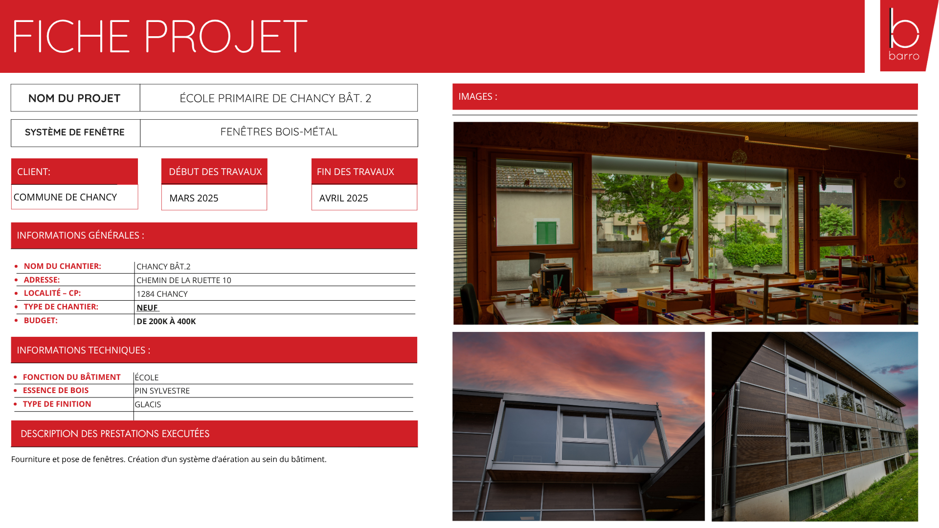 Année de réalisation du Projet : Mars 2025 – Avril 2025Budget de de 200K à 400K